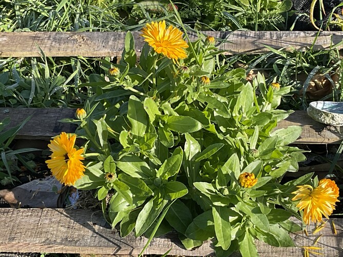 It’s Calendula Season in the garden - actually it’s always calendula season, as they flower year round, but I find them especially pretty and cheering at this time of year, as the days get shorter and colder, and the nights get longer… and also colder…! It is a joy to walk out in the early morning sunshine and see the bright yellows and oranges of the calendula plant, growing and spreading its way around the garden.