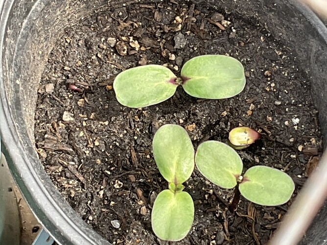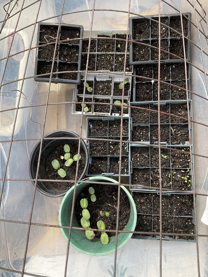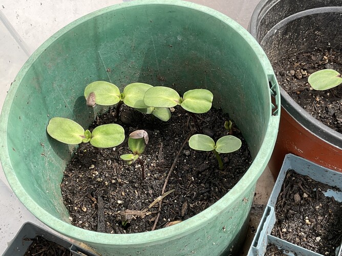 Sunflowers can be sown from seed, from August to January. I usually like to start mine off indoors, behind glass, at the very end of winter. However this year I have been able to sow them straight into pots, and put them in a plastic box in my new raised garden bed. This keeps them out of the wind, out of the reach of slugs, and also gives some extra heat. We have recently been blessed with some good downpours of rain, which have soaked the seeds and helped them to germinate in the following sunny days.