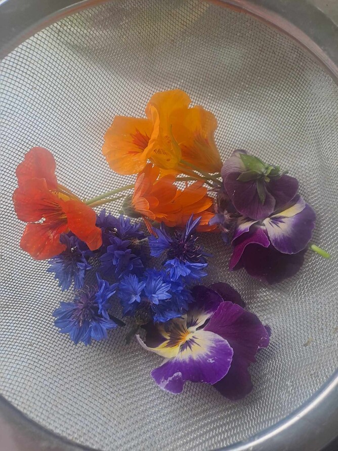 Edible flowers - nasturtiums cornflowers, viola, borage and calendula