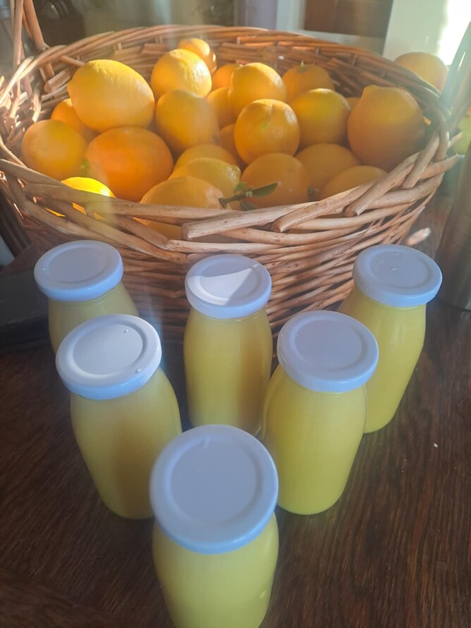 It was lovely cooking good food in good company, in the sunshine. Everyone went home with a gift bag of fresh lemons, lemon juice, lemon gummies, and lemon honey - a whole bagful of fresh sunshine and vitamins!
