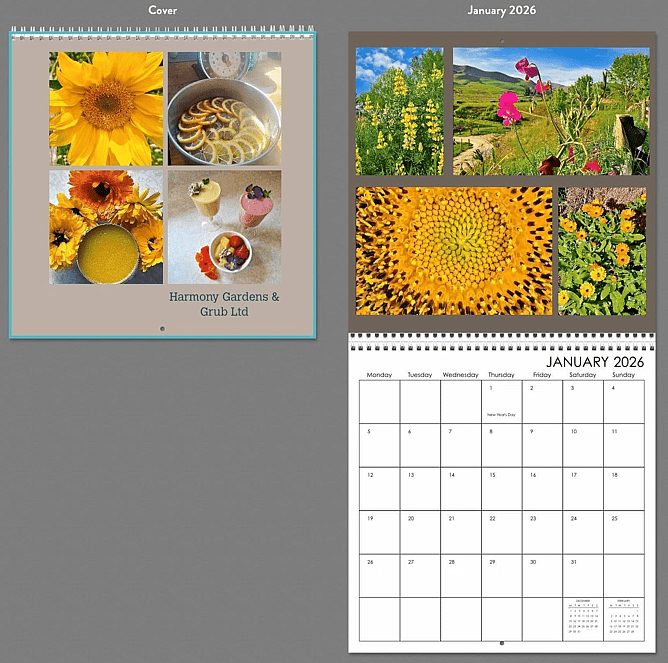 Why not avoid the crowds, shop online, support a local small business, and buy them a special Harmony Gardens 2026 calendar?